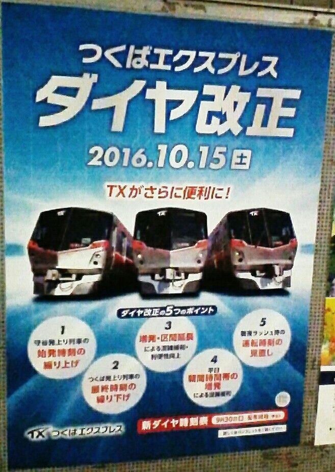 ガックリですなぁ つくばエクスプレスtxのダイヤ改正 10月1日 樹 土 木 杜 建築 キトキトケンチク よもやま噺