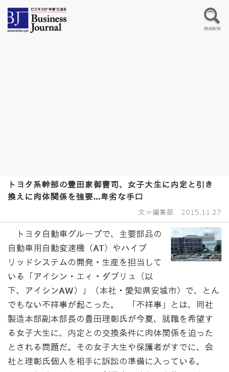 トヨタ系幹部の豊田家御曹司 女子大生に内定と引き換えに肉体関係を強要 卑劣な手口 2015年11月27日 エキサイトニュース