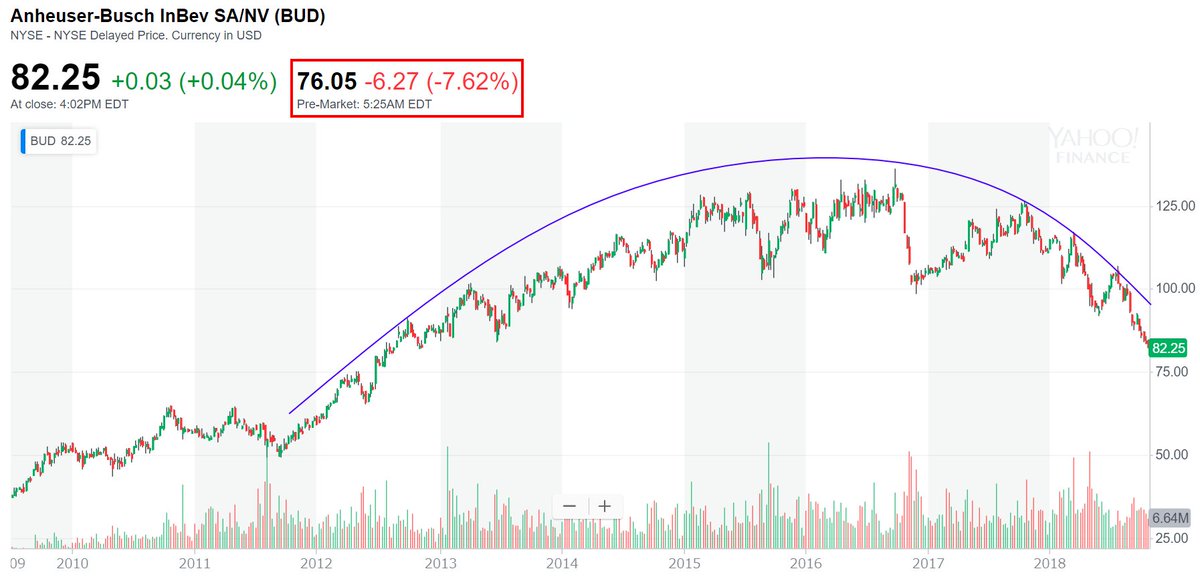 世界の株価チャート ノート On Twitter ビール世界最大手のabインベブがついに減配で株価下落 見事なラウンドトップチャート アルトリアグループはabインベブの株式10 くらい保有していたはずだが税金ケチって損した形か