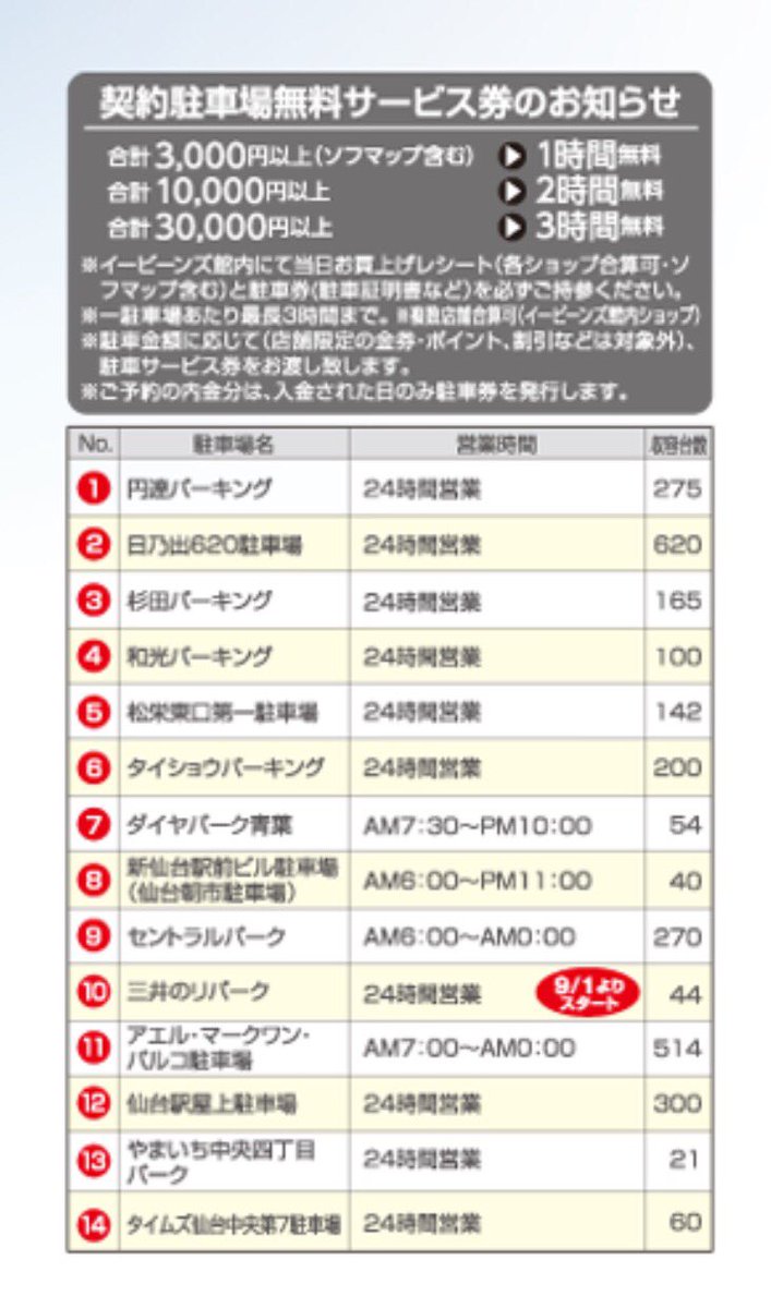 ট ইট র Ebeans イービーンズ 公式 イービーンズ契約駐車場 イービーンズ館内のお買上合計金額に応じて下記の通り駐車場無料 3 000円で1時間 10 000円で2時間 30 000円で3時間無料 14ヶ所の契約駐車場を利用して 車で楽々お得にお買い物 Https T