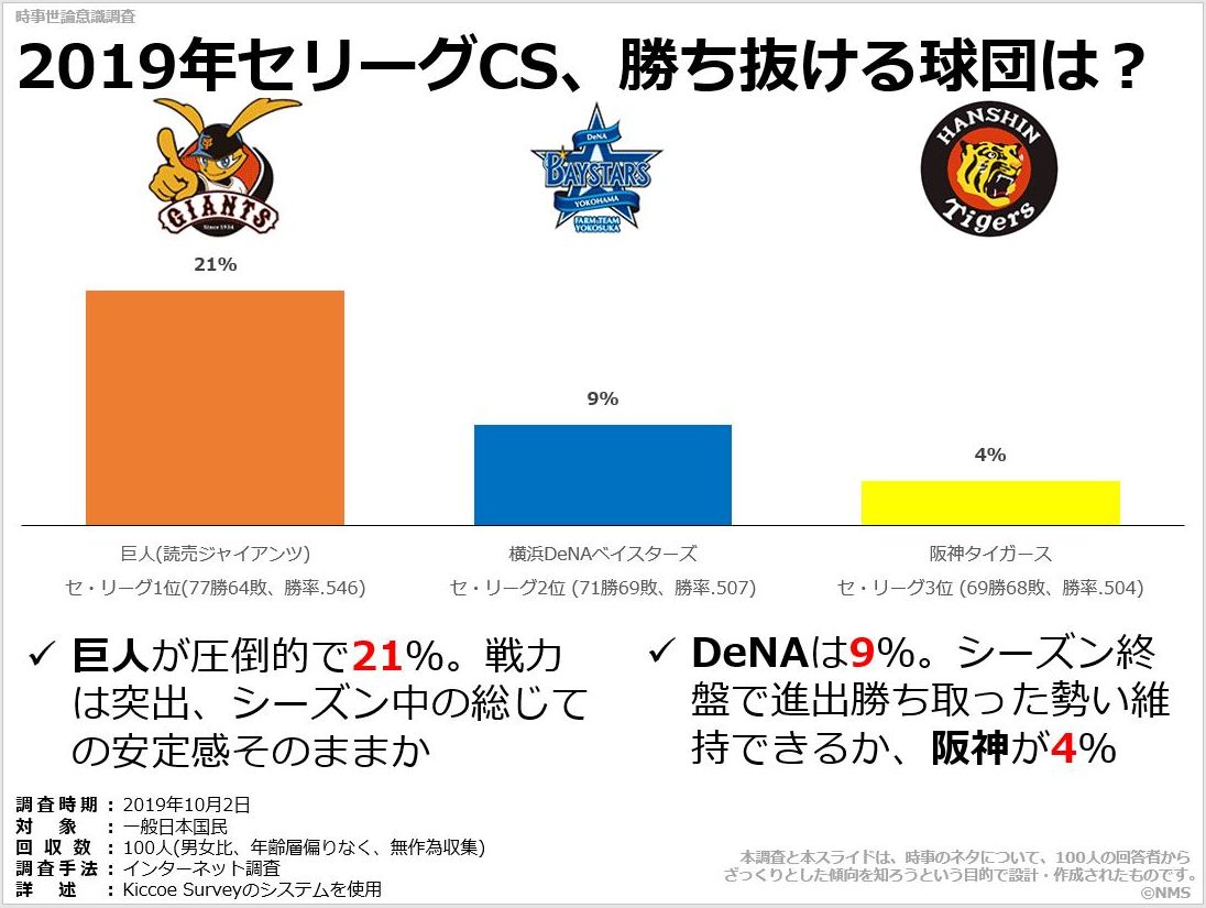 2019年セリーグcs 勝ち抜ける球団は 時事世論